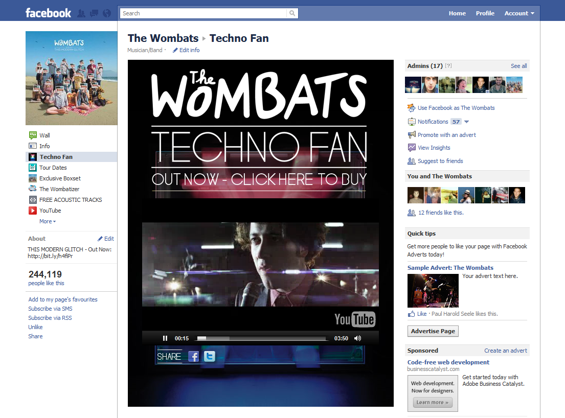 To promote the release of Techno Fan on Facebook I created a simple page tab, designed by Kate Brighouse, showcasing the artwork and music video for the single, along with a link to buy the album from iTunes.